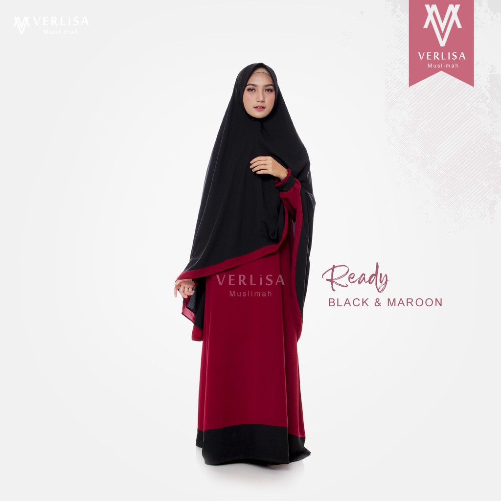 Jual Gamis Syari Kombinasi Hitam Maroon Verlisamuslimah Indonesia Shopee Indonesia